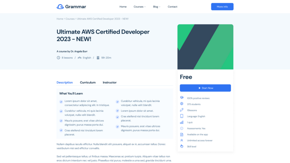 Whether you're building a course for grammar skills or another educational topic, Grammar Pro provides a solid foundation to get you started. It's perfect for anyone looking to create a visually appealing and easy-to-use online learning platform.